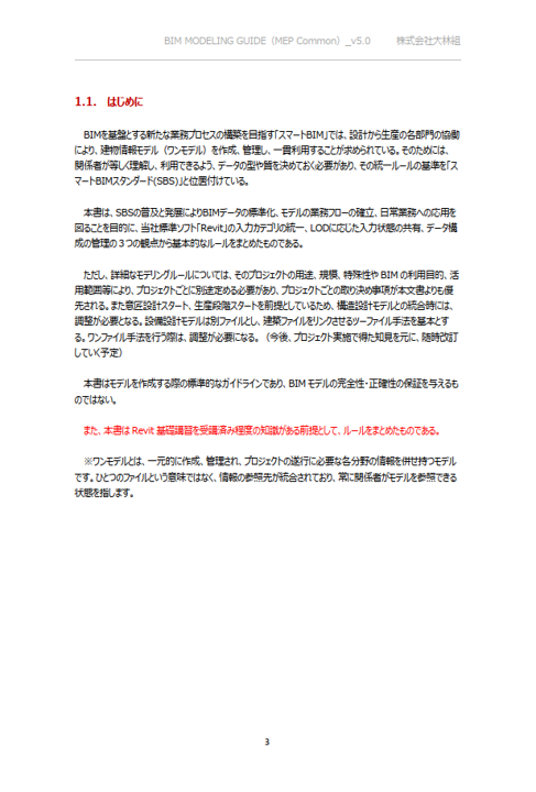 SBSの普及と発展によりBIMデータの標準化、モデルの業務フローの確立、日常業務への応用を図ることを目的に、「Revit」の入力カテゴリの統一、段階に応じた入力状態の共有、データ構成の管理の3つの観点から基本的なルールをまとめました。